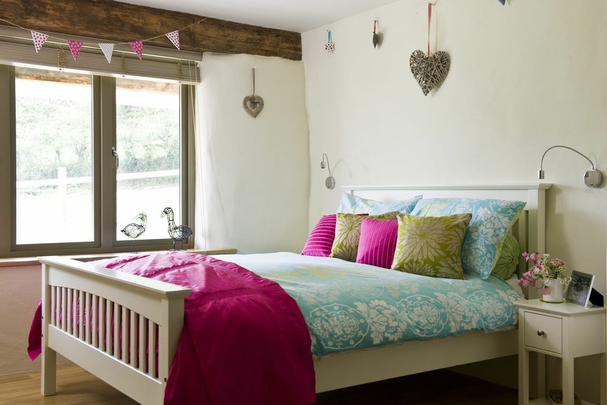 Backing on to the meadows where the horses often roam, Higher Hill is secluded, south facing and offers 360 degree views over the meadows. Higher Hill is a classic ‘upside down’ house – the bedrooms are on the ground floor and the living room is upstairs to take full advantage of the light and glorious countryside views. Kick off muddy wellies in the generous entrance hall and climb the stairs to reveal a wonderfully inviting open plan living space with masses of room for family get-togethers after a busy day on the beach. It is bright, light and spacious with views from every window, comfy sofas and a large flat screen TV. French doors lead to a sun deck with table and chairs for alfresco dining on lazy summer evenings. The Shaker style painted wooden kitchen has granite work tops, gas hob with electric oven, fridge/freezer and is well equipped with everything you might need to cook up a holiday feast for all the family to enjoy around the farmhouse table alongside. At the top of the stairs is a separate cloakroom with wc and basin. There are three generously sized bedrooms downstairs. The master bedroom has a king size bed and large ensuite shower room alongside. There is a second king size bedroom and a twin room with two 3ft single beds which share a large family bathroom with corner bath and separate shower.